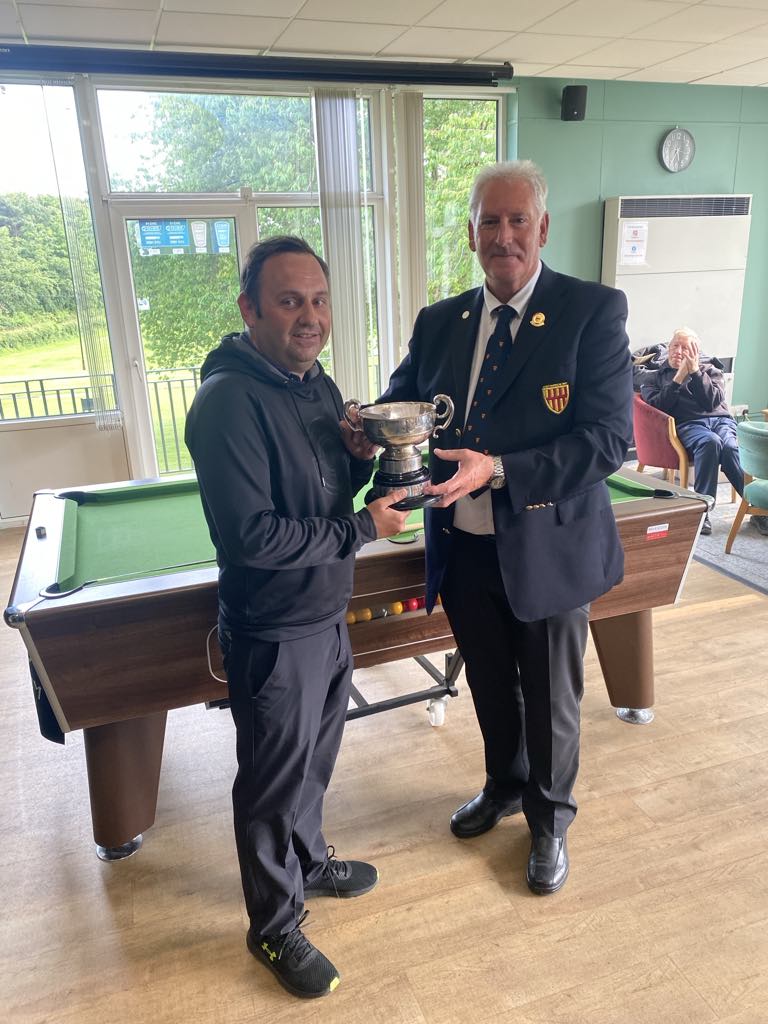 County Strokeplay Champion Phil Ridden being presented with the Presidents Bowl by NUGC President Paul Brennan